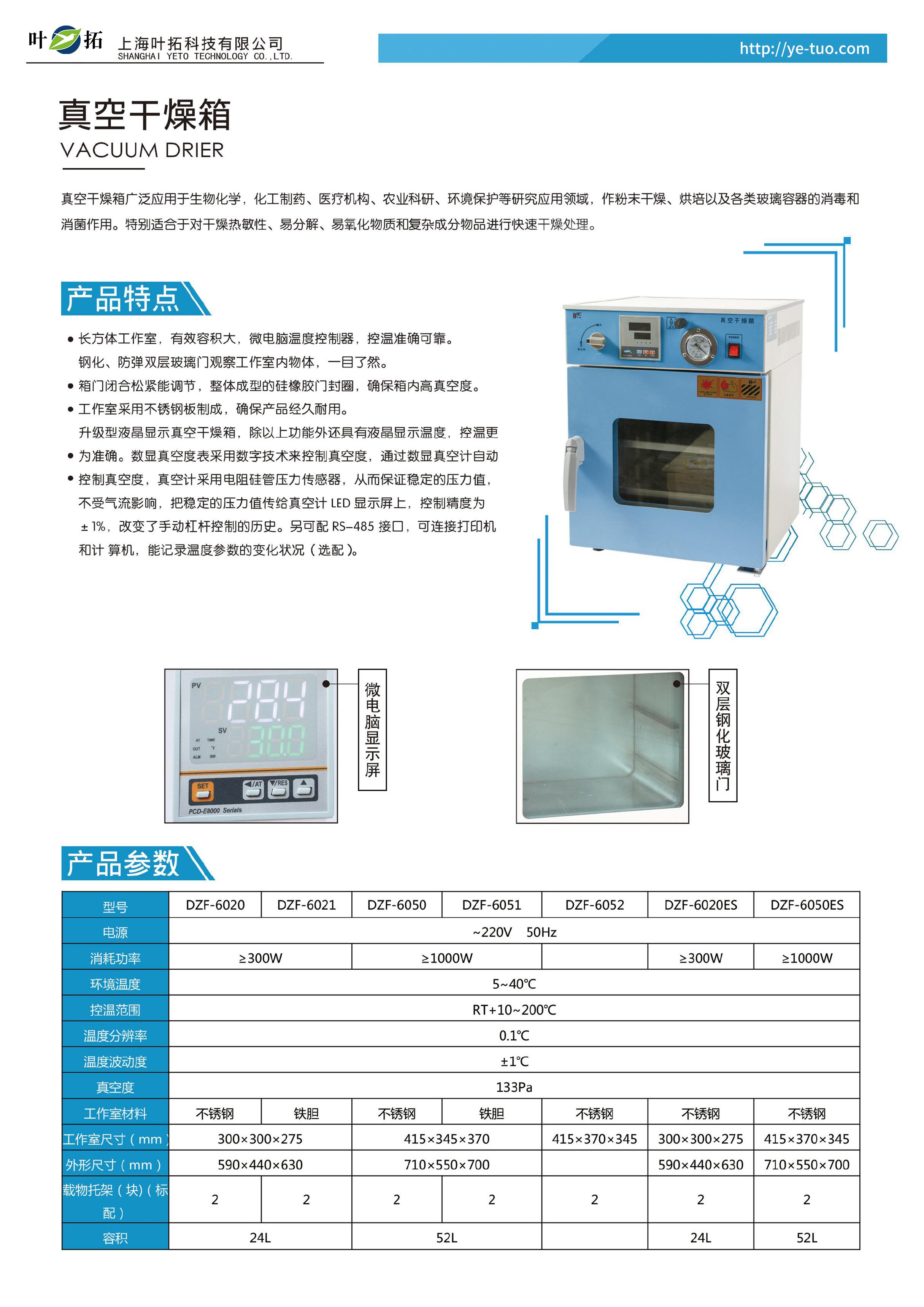 葉拓DZF系列臺式真空干燥箱產品特點