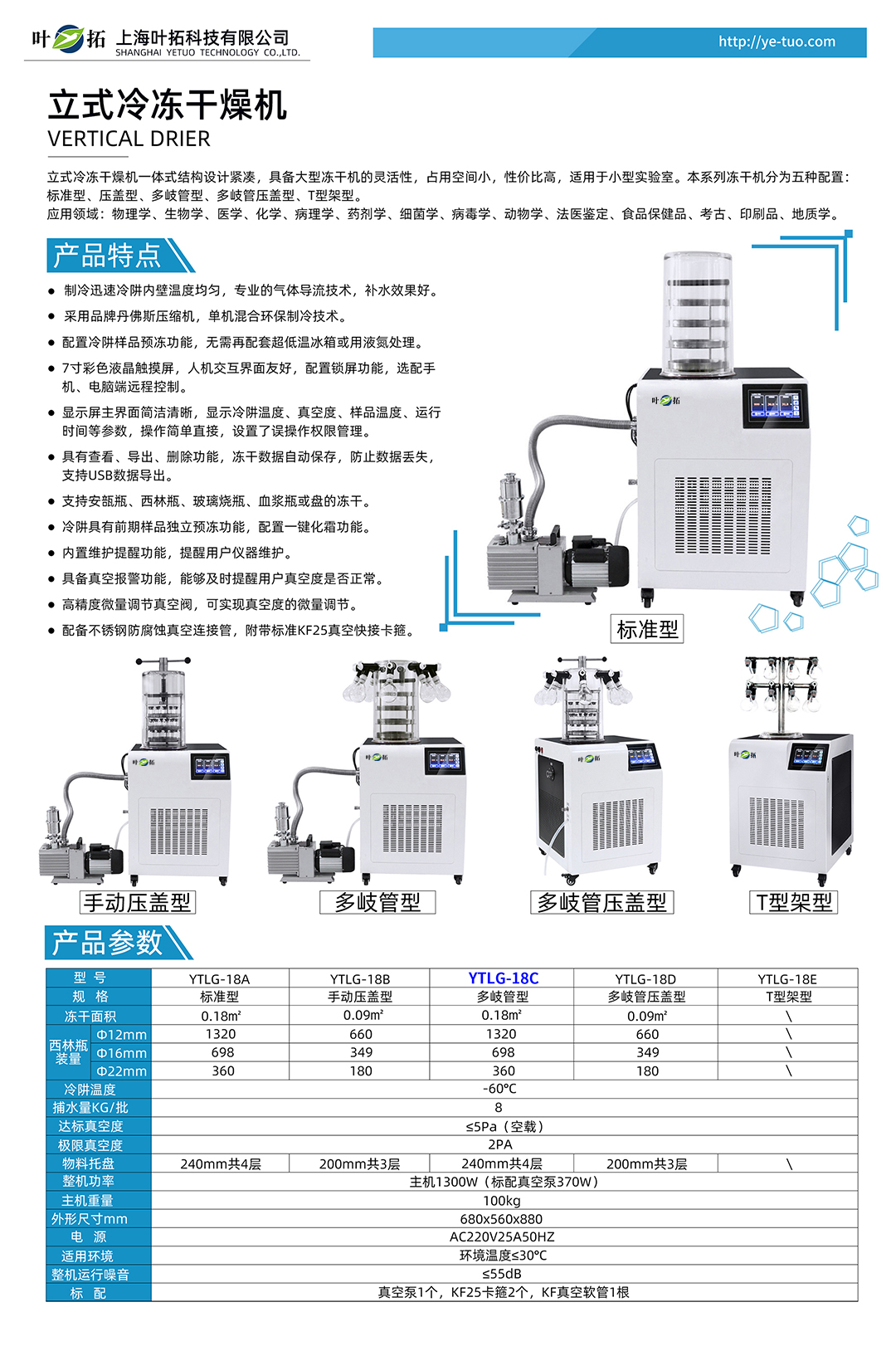 上海葉拓 YTLG-18C 凍干機 立式真空冷凍干燥機 多歧管型